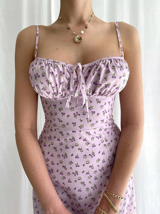 Floral Print Cottagecore Slpit Dress